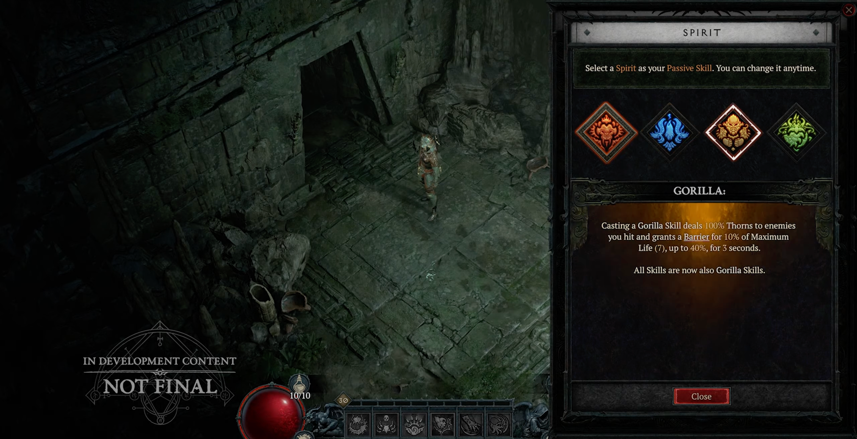 Spirit Guardians embody the connection between humans and the natural world. The Spiritborn can call upon the Jaguar for speed and ferocity, the Gorilla for resilience and retaliation, the Eagle for precision and swiftness, and the Centipede for poison and crowd control.